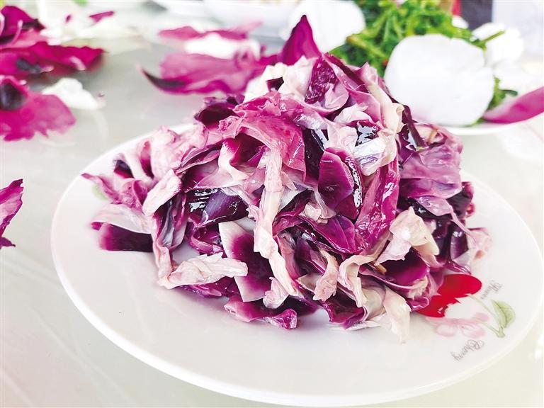 花瓣落下可以吃,與吃榆錢(qián)一樣,原汁原味,因品種差別,有的略甜、有的微苦、有的則帶點(diǎn)清香。涼拌則不僅依舊保留花香,菜品也好看。