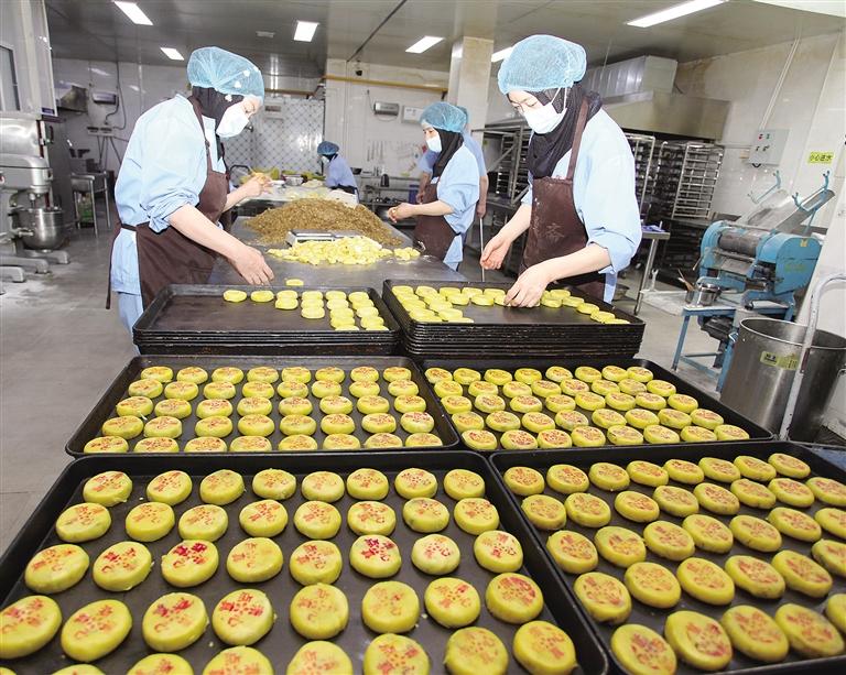 喝牡丹花茶,不能忽略牡丹花餅。蘊(yùn)有淡雅花香、濃郁情懷的鮮花餅,經(jīng)過(guò)腌制花醬、皮面包酥、壓模成型、烤制等工藝精心制成,層層酥皮裹著綿香的牡丹花醬,吃來(lái)清甜不膩。