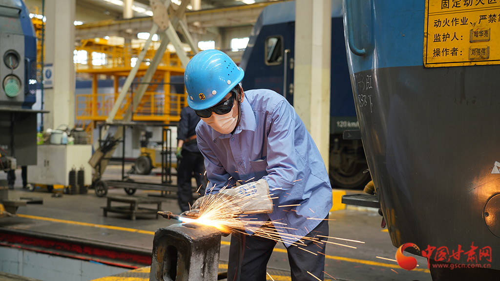 身穿長(zhǎng)袖工作服、腳蹬勞保鞋、頭戴藍(lán)色安全帽,手上戴著電焊專用防護(hù)手套……蘭州鐵路局蘭州西機(jī)務(wù)段西整備車間電焊班組內(nèi),鐵路“焊將”劉偉偉在火花四濺、煙霧彌漫的工作臺(tái)位間來(lái)回穿梭,一點(diǎn)一點(diǎn)對(duì)機(jī)車車鉤鉤尾墊進(jìn)行焊修。