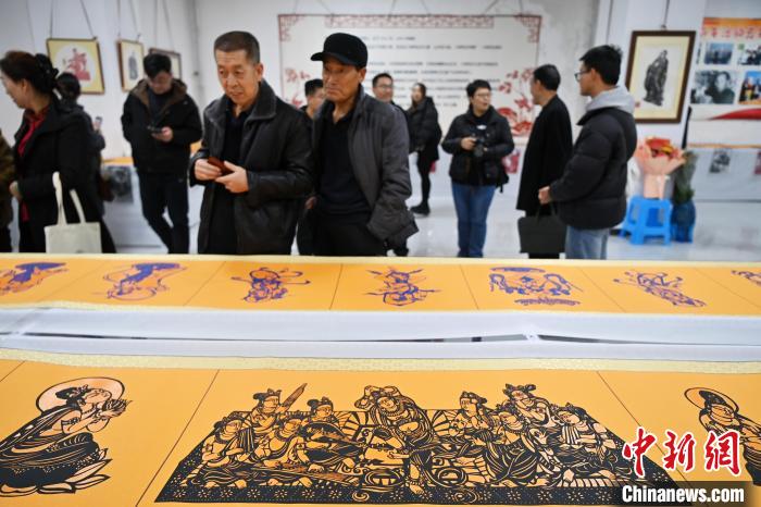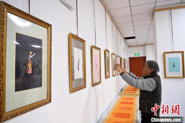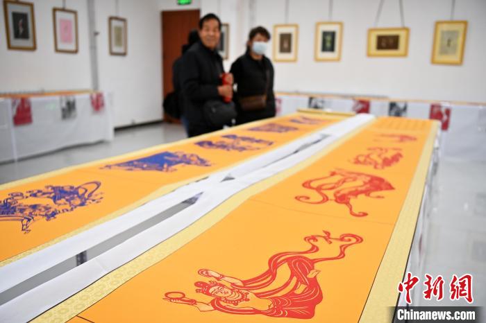 11月19日,“蘭州剪紙”非遺傳承人李自新、李麟桐剪紙藝術展在甘肅省蘭州市開幕,展出以敦煌壁畫、隴上風物等為題材,精心創(chuàng)作的剪紙作品。圖為展出的剪紙作品。中新社記者 九美旦增 攝
