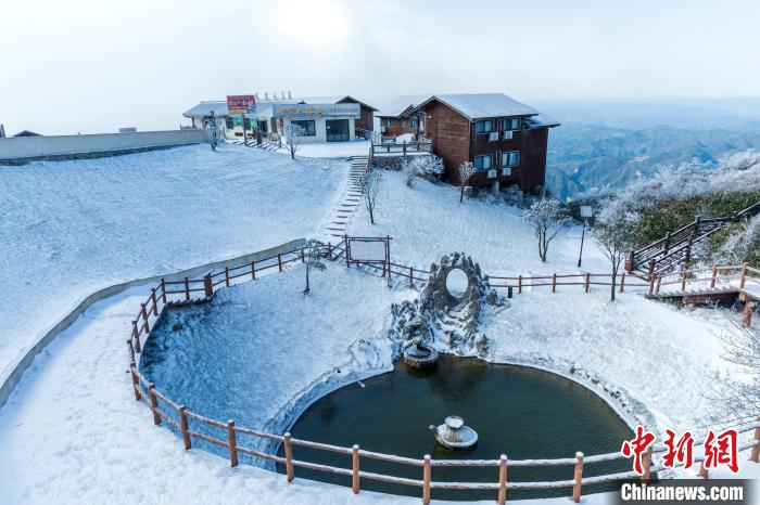 11月25日,受強(qiáng)冷空氣影響,四川省萬(wàn)源市遭遇強(qiáng)降溫天氣。八臺(tái)山景區(qū)迎來(lái)了一場(chǎng)降雪,雪花紛紛灑灑,八臺(tái)山被裝點(diǎn)成了銀裝素裹的冰雪世界。鄭興平 攝