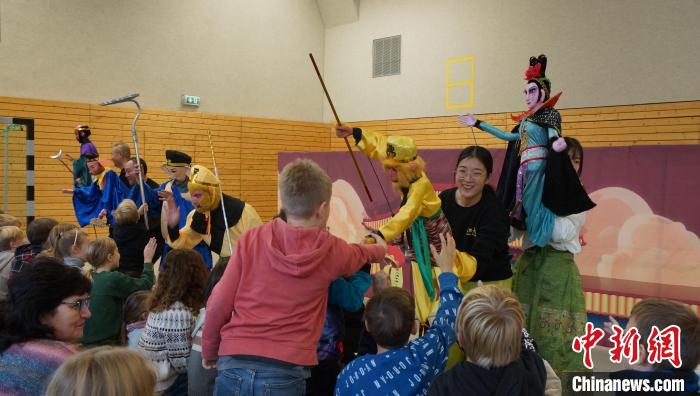 木偶藝術(shù)團(tuán)22日來到柏林市三一小學(xué),為該校一年級至四年級的學(xué)生們演出2場經(jīng)典木偶劇節(jié)目《三打白骨精》。木偶藝術(shù)團(tuán)通過精湛的杖頭木偶操控技藝,結(jié)合京劇武打、真人演繹,生動傳神地展示了中國傳統(tǒng)文化故事,引發(fā)了孩子們的驚嘆。