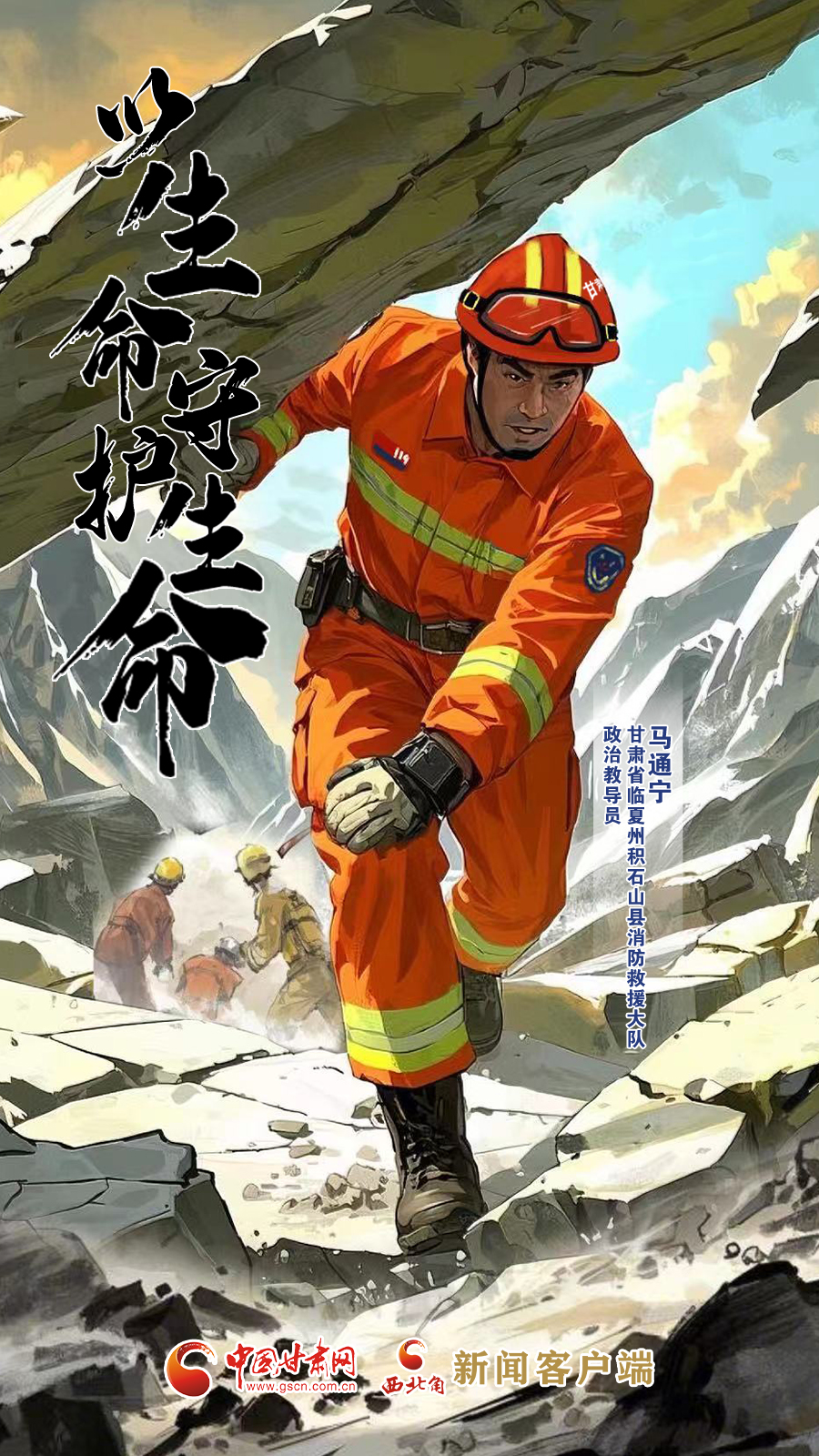 手繪海報(bào)|甘肅省臨夏州積石山縣消防救援大隊(duì)政治教導(dǎo)員馬通寧:以生命守護(hù)生命