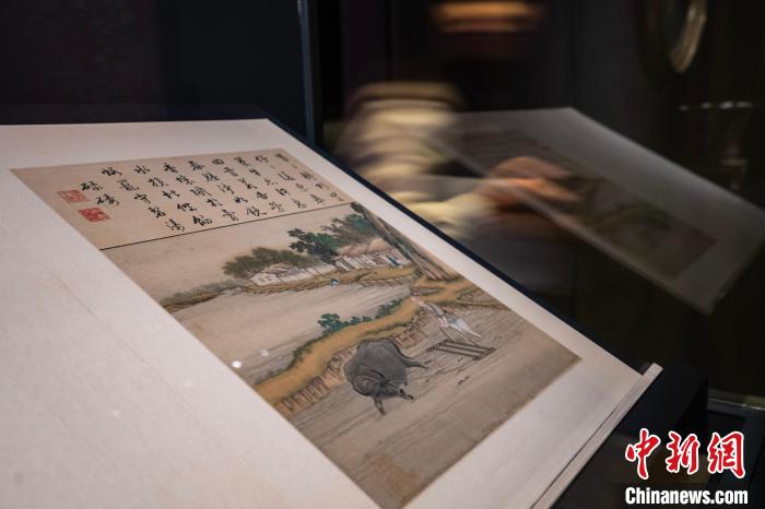 圖為故宮博物院藏《胤禛耕織圖(碌碡)》展品。中新網(wǎng)記者 侯宇 攝