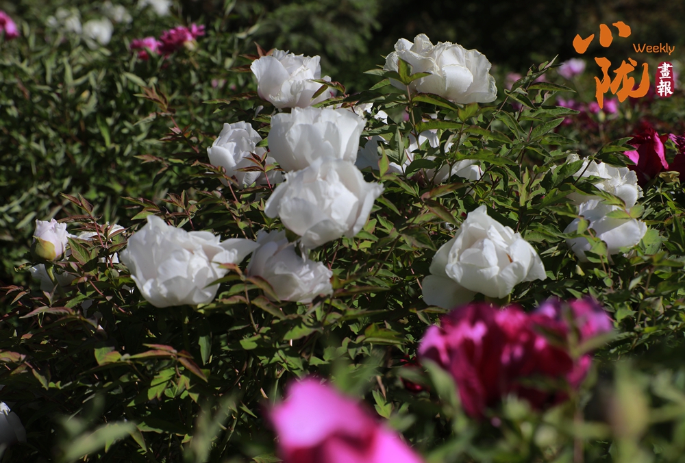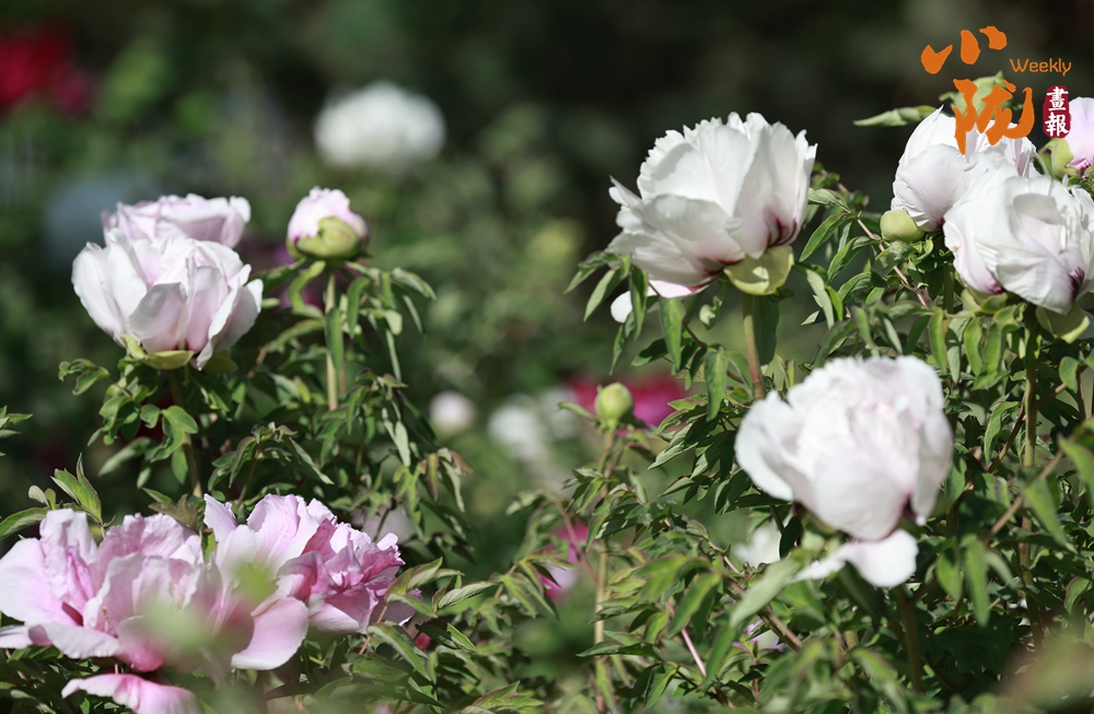 陽光照射下,牡丹粉的如霞,嬌艷柔美;白的像雪,純凈典雅,還有紫、黃等多種色彩相互交織,花朵碩大且花瓣層層疊疊,在微風中輕輕搖曳,散發(fā)出陣陣淡雅的清香,讓人陶醉其中。
