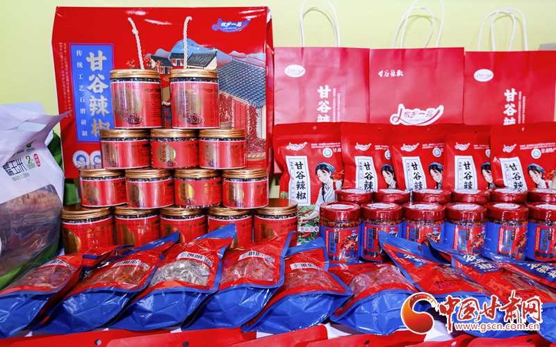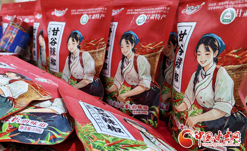 記者在“甘味”展館看到,甘谷辣椒展位前人頭攢動,熱鬧非凡。展位上,一排排包裝精美的甘谷辣椒產品整齊擺放,辣椒絲、辣椒面、辣椒段、辣椒串、油潑辣子以及多款辣椒禮盒琳瑯滿目,吸引了眾多消費者的目光。