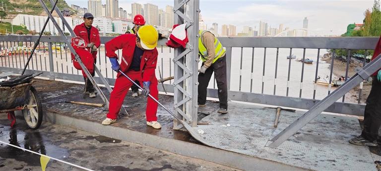 中山橋作為蘭州市地標性建筑和重要的交通樞紐,每日人流量較大。此次橡膠板整體更換將有效提升橋面防滑性能和耐久性,解決現(xiàn)有人行道橡膠板因長期使用導致的磨損老化、雨雪天氣濕滑、板底空鼓及積水等問題,進一步優(yōu)化黃河風情線整體環(huán)境,為市民提供更加舒適、安全的出行體驗。