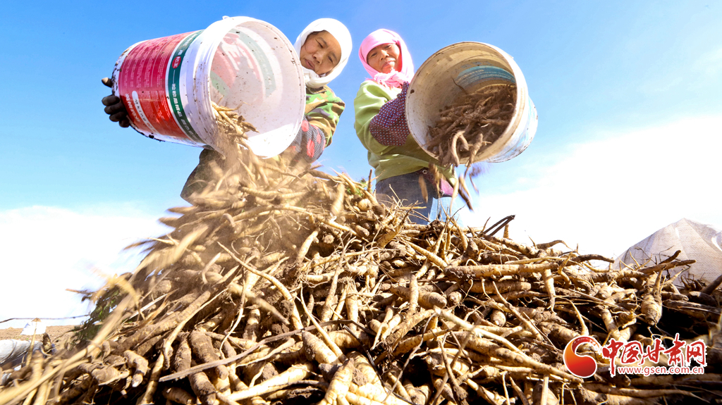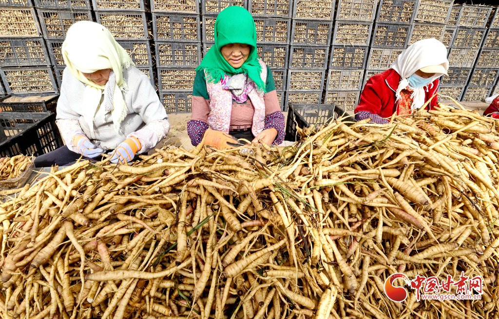 連日來,張掖市山丹縣李橋鄉(xiāng)5000多畝黃參種植基地一片繁忙,收獲機(jī)往來穿梭,新采的黃參在田邊匯集后,被運(yùn)往加工中心進(jìn)行清洗、分揀和包裝,隨后發(fā)往北京、天津、上海、四川、重慶、山東、安徽等省市。