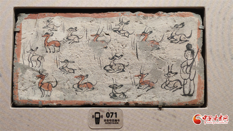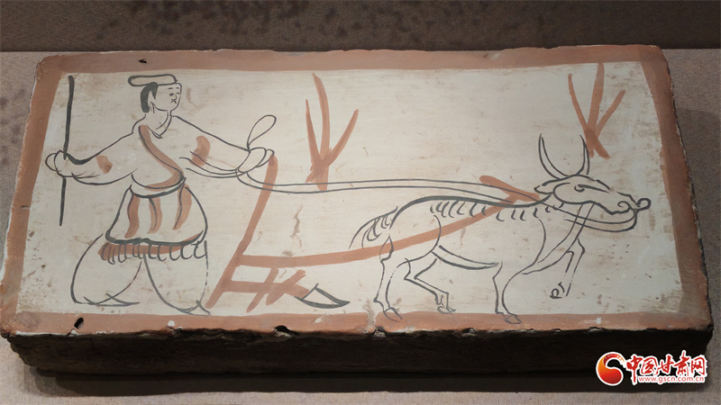 在博物館的“古冢丹青——高臺魏晉十六國時期墓葬壁畫藝術(shù)陳列”展廳里,記者看到,《二牛耕地畫像磚》生動再現(xiàn)了當(dāng)時的農(nóng)耕技術(shù):兩頭耕牛架著直轅犁,后隨的男子一手扶犁一手揚鞭,展現(xiàn)了典型的“二牛抬杠”耕作方式?!赌谅箞D壁畫磚》則描繪了古人放牧鹿群的獨特場景,為研究當(dāng)時的畜牧業(yè)發(fā)展提供了珍貴資料。