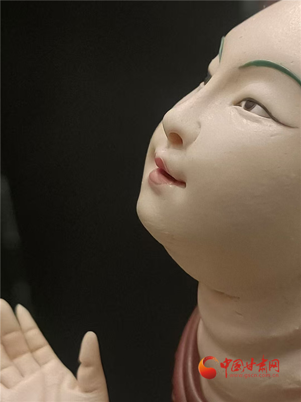 楊凱說(shuō),壁畫(huà)是平面的,也是立體的,看著石窟中那些栩栩如生的人物,他就想著如何讓這些繪畫(huà)在空間立體起來(lái),成為蘊(yùn)含豐富敦煌元素的面塑。