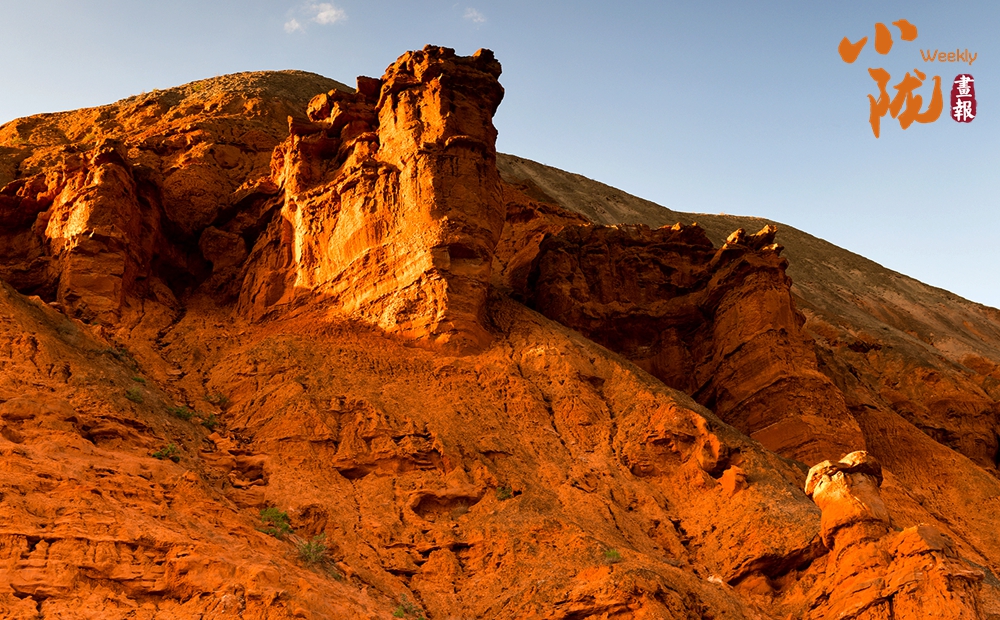 極目遠(yuǎn)眺,丹霞丘陵在廣袤的黃土高原上奔騰不息,猶如一座座火焰山。朱砂紅如烈焰燃燒,赭石黃似大地厚土,青黛綠若幽谷深潭,間或夾雜著沉穩(wěn)的灰褐,共同編織出一種難以言喻的斑斕與和諧。