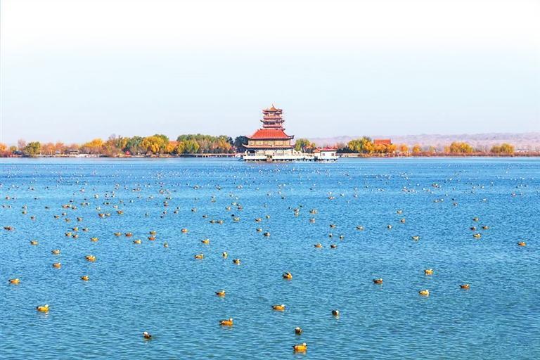 而在河西走廊東端的武威,天馬湖濕地則是城市中的“候鳥天堂”。天馬湖是人工修建的濕地,卻憑借著良好的生態(tài)環(huán)境,吸引了大量候鳥前來。冬季的天馬湖,岸邊的樹木掛滿了冰掛,晶瑩剔透,湖面的水域里,綠頭鴨、斑嘴鴨成群游動,偶爾還有白鷺在湖邊駐足,它們與城市中的建筑相映成趣,成為武威冬日里一道獨特的風(fēng)景線。