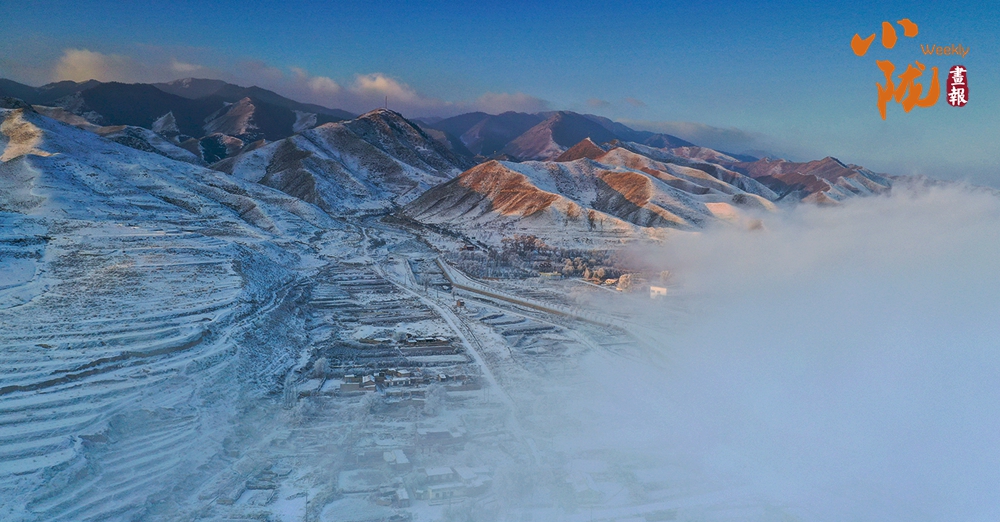 山下的屋舍靜臥于無邊的潔白中,淺藍天色漸次暈染,蒼灰山脊如墨筆勾勒,山川草木皆成了畫中疏淡的筆意,低訴著悠長的冬韻。