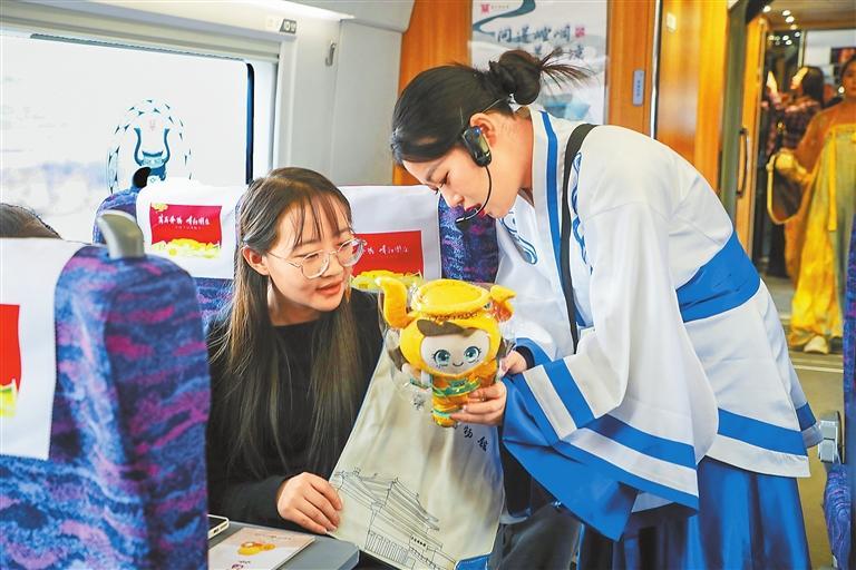“昔日驛馬傳信需數(shù)月,如今高鐵朝發(fā)夕至。”前往廣州的旅客趙露望著窗外掠過的風景,感慨萬千,“這趟列車太有創(chuàng)意了,它打破了博物館的圍墻,讓隴原文化沿著鐵軌,從黃河之畔傳到珠江之濱,讓更多人了解到隴原大地的文化底蘊。”