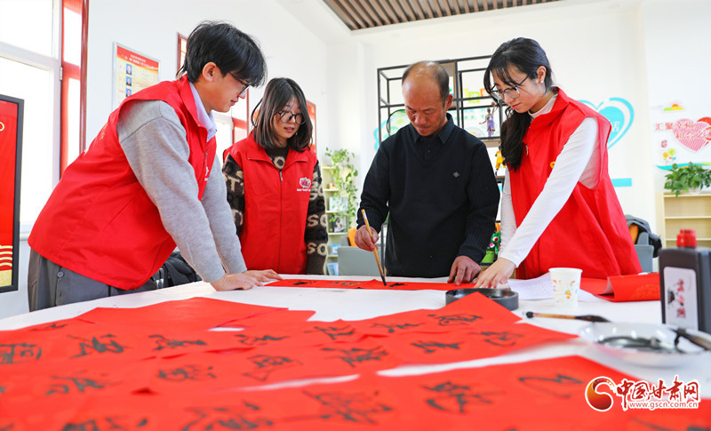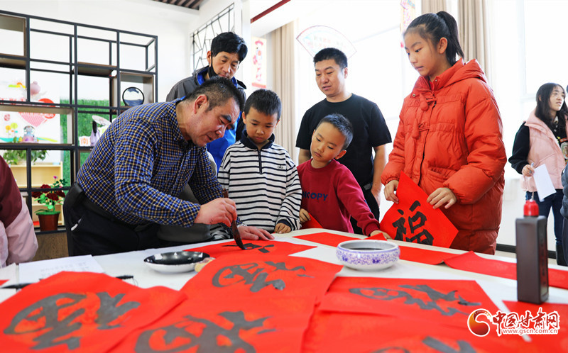 春節(jié)臨近,民樂縣組織群眾文化志愿者服務(wù)隊開展“翰墨迎春”公益文化活動,志愿者現(xiàn)場揮毫潑墨書寫春聯(lián),為群眾書寫春聯(lián)和“福”字,讓群眾在家門口享受“文化大餐”,迎接新春佳節(jié)的到來。
