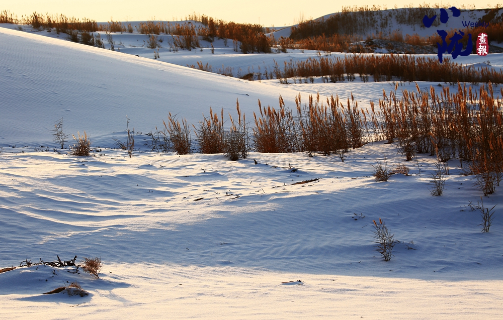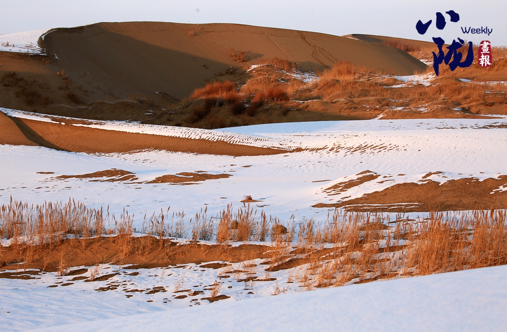 白雪覆蓋著金黃沙丘,而枯黃的蘆葦仍倔強(qiáng)生長于沙地之間。這不僅是色彩的疊映,更構(gòu)成了一幅堅韌的畫卷:冷與暖、靜與動,在遼闊的天地間,交織成一篇關(guān)于守望與重生的故事。